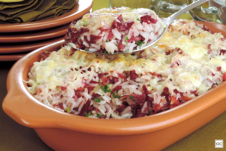 O arroz carreteiro é um dos pratos mais famosos da culinária brasileira. Sua origem é gaúcha, mas a receita ganhou adeptos em vários lugares do Brasil. O formato seguiu praticamente o mesmo: carne-seca ou charque, arroz, alguns temperos e um sabor para lá de especial. Mas, como tudo na culinária, existem algumas variações ainda mais saborosas desse prato. Pensando nisso, veja a receita de arroz carreteiro de forno que separamos para você fazer para a próxima refeição!